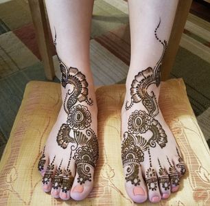 There are many steps needed to properly apply henna to an individual. After the henna paste is created, the henna artist transfers the paste to a narrow piping bag. The henna is then applied depending on the design. After drying, the cotton ball with lemon juice should be applied to the henna tattoo. The color that will result depends on the time the henna is kept on the skin: the longer you keep it on, the darker the color will be. After removing, the henna tattoo will remain for 7-14 days depending on personal skin and daily lifestyles.